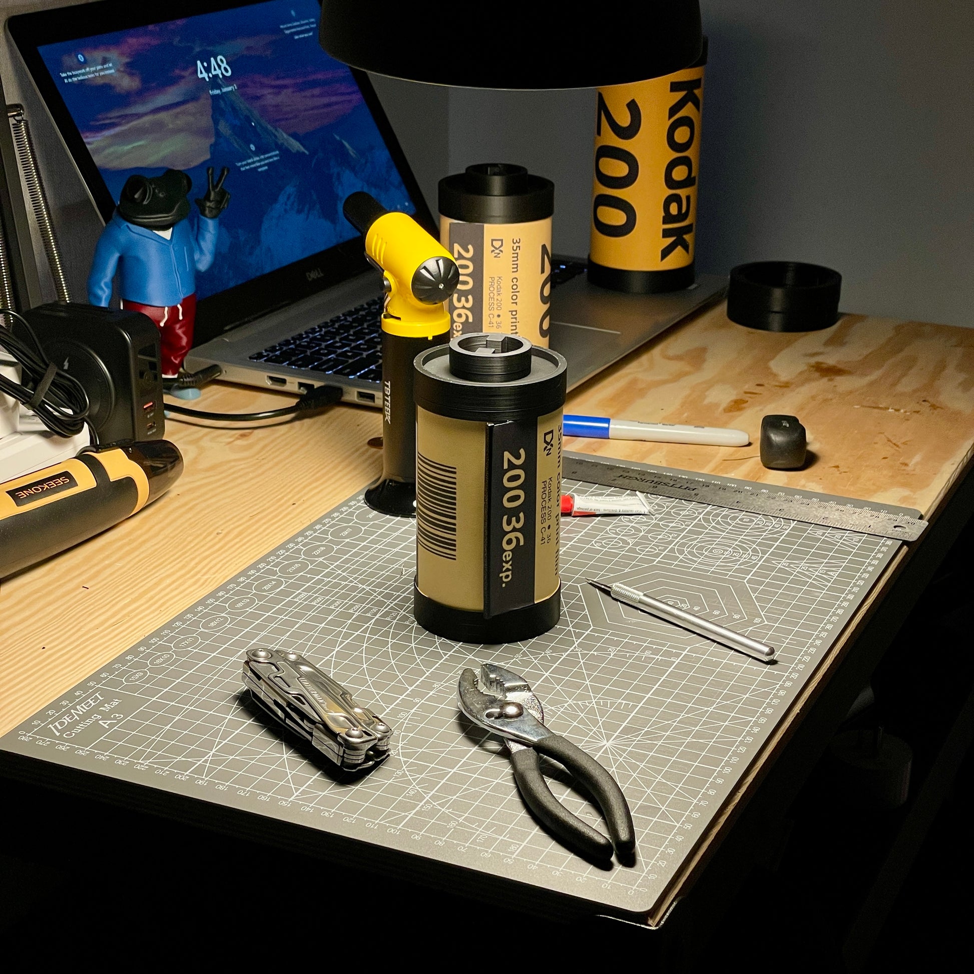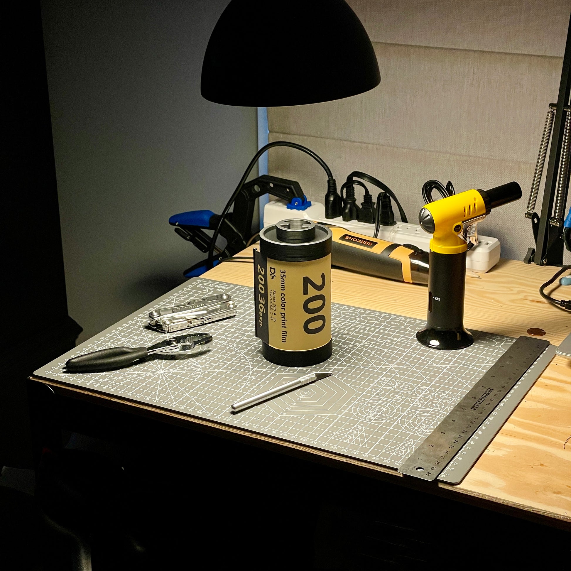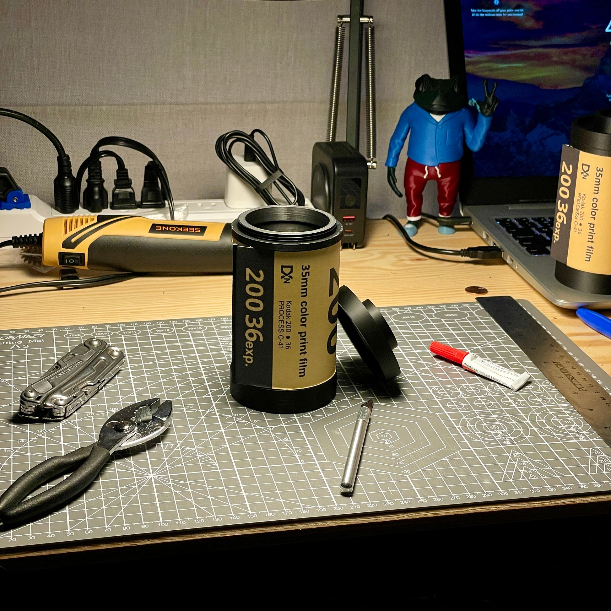 This film stash is 3d printed and made to order in North Carolina. This means that orders are made and processed in the order they are received, and that there could be visible layer lines and small, unique details to every lamp!